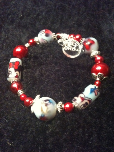 | Enkelvarv på wire med kabinhake och förlängningskedja - Disneypärlor tillsammans med röda pärlor och silverdetaljer! |